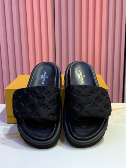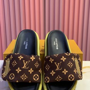 Louis Vuitton Pool Pillow Flat Comfort Mules in Cacao Brown Monogram nylon