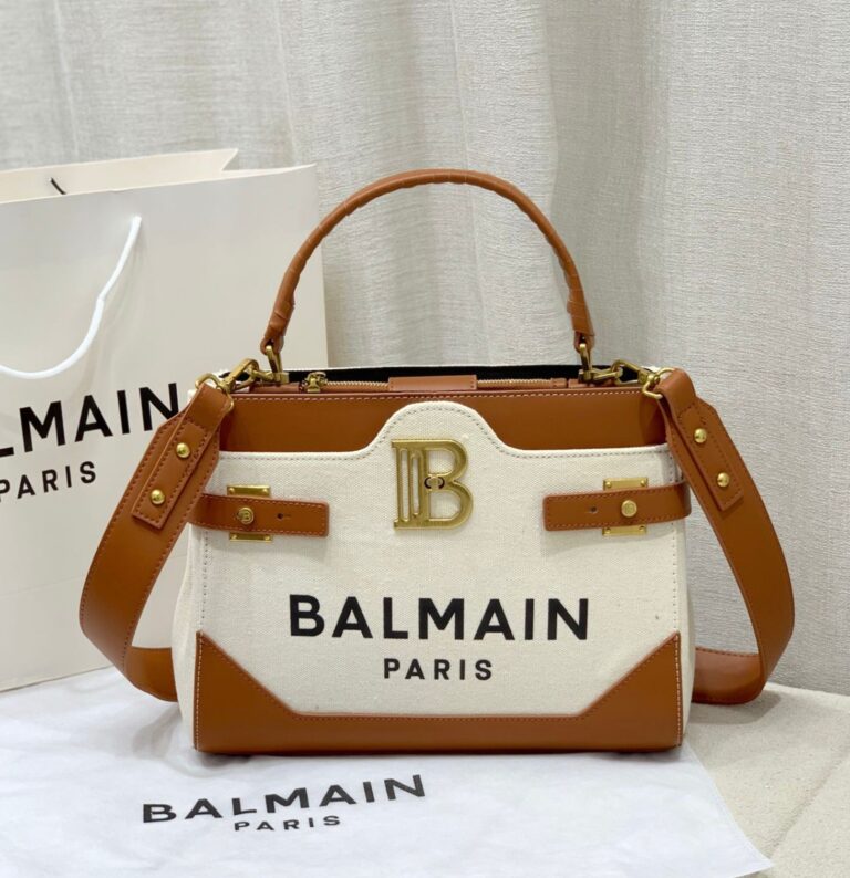 Balmain B-Buzz Small Top Handle bag in monogrammed canvas and leather