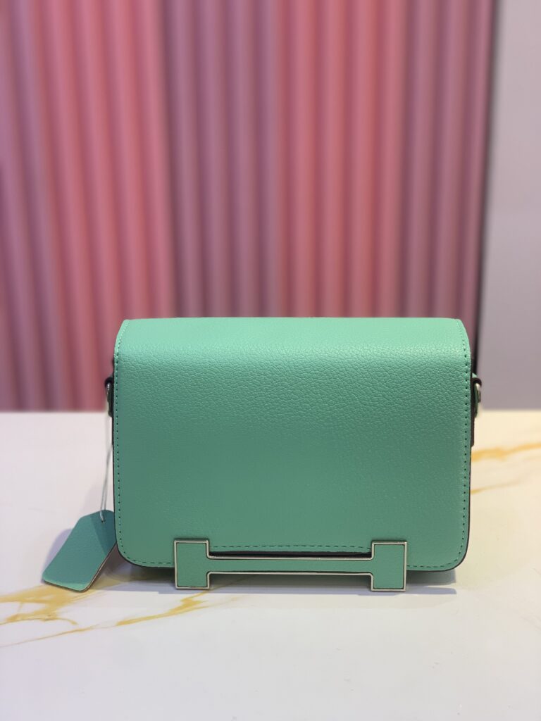 Hermès Geta bag in a green hue, likely Vert Fizz chevre leather