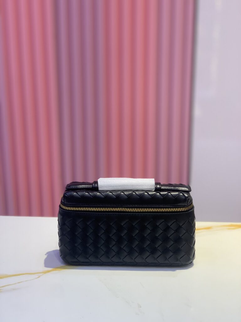 Black Bottega Veneta Andiamo clutch bag with a gold-finish metal knot closure