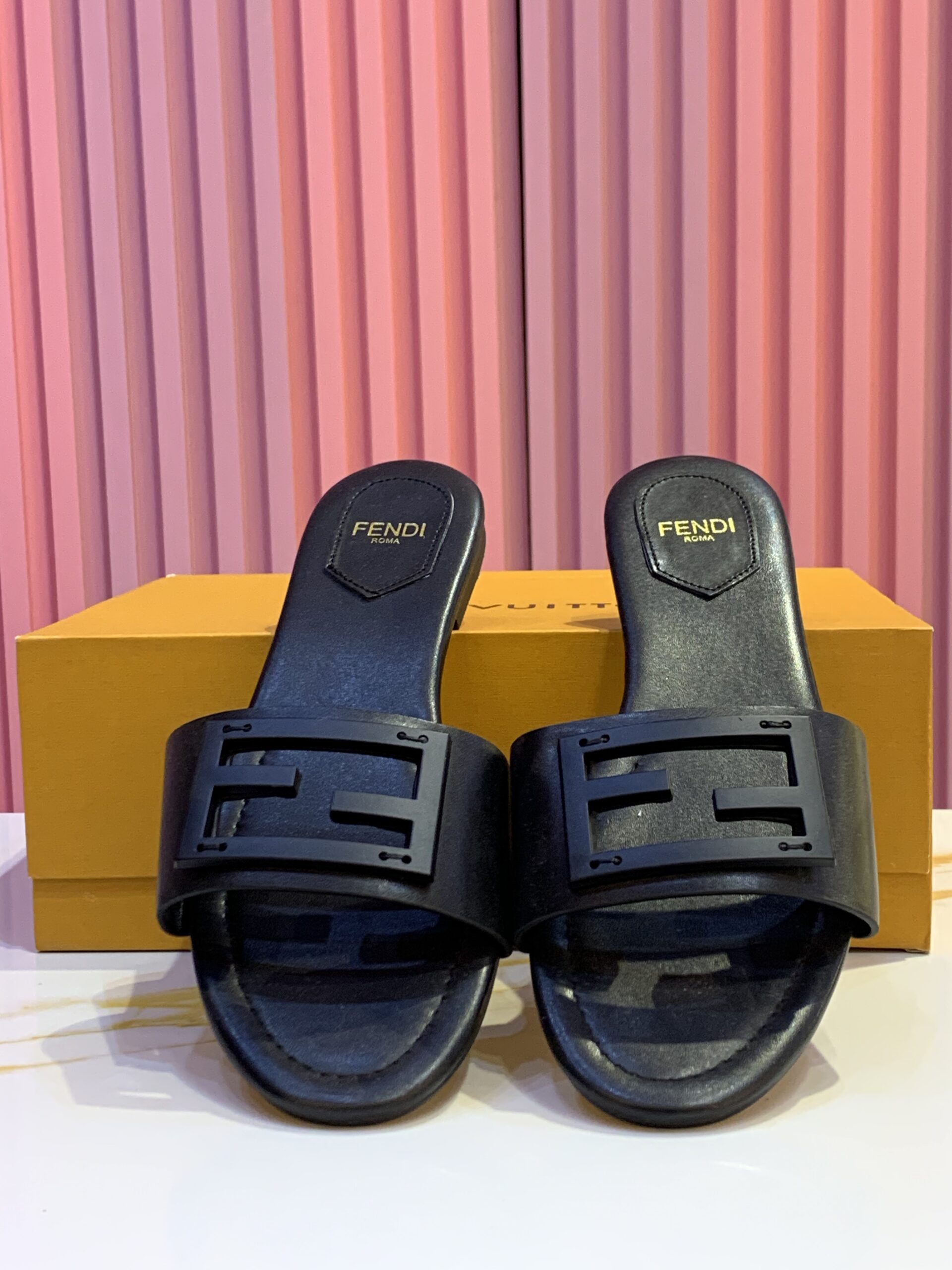 Be the first to review “Fendi Baguette black leather slide sandals”