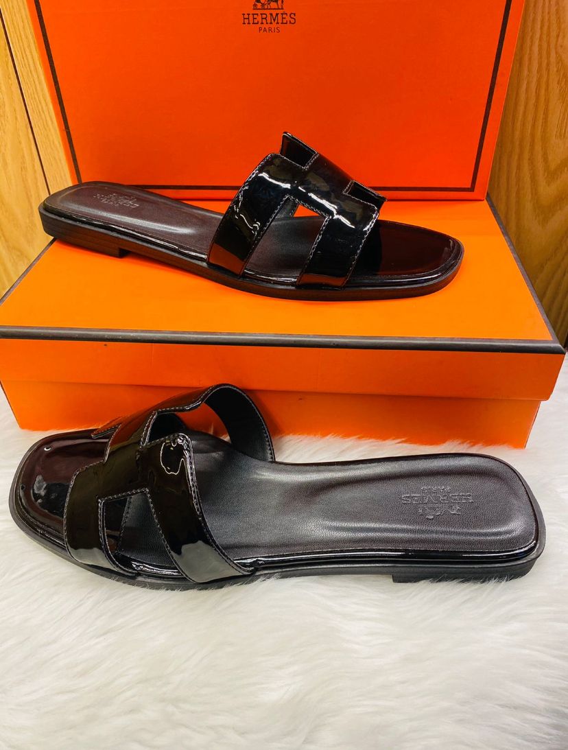 Be the first to review “classic Hermès Oran sandals in black patent leather”