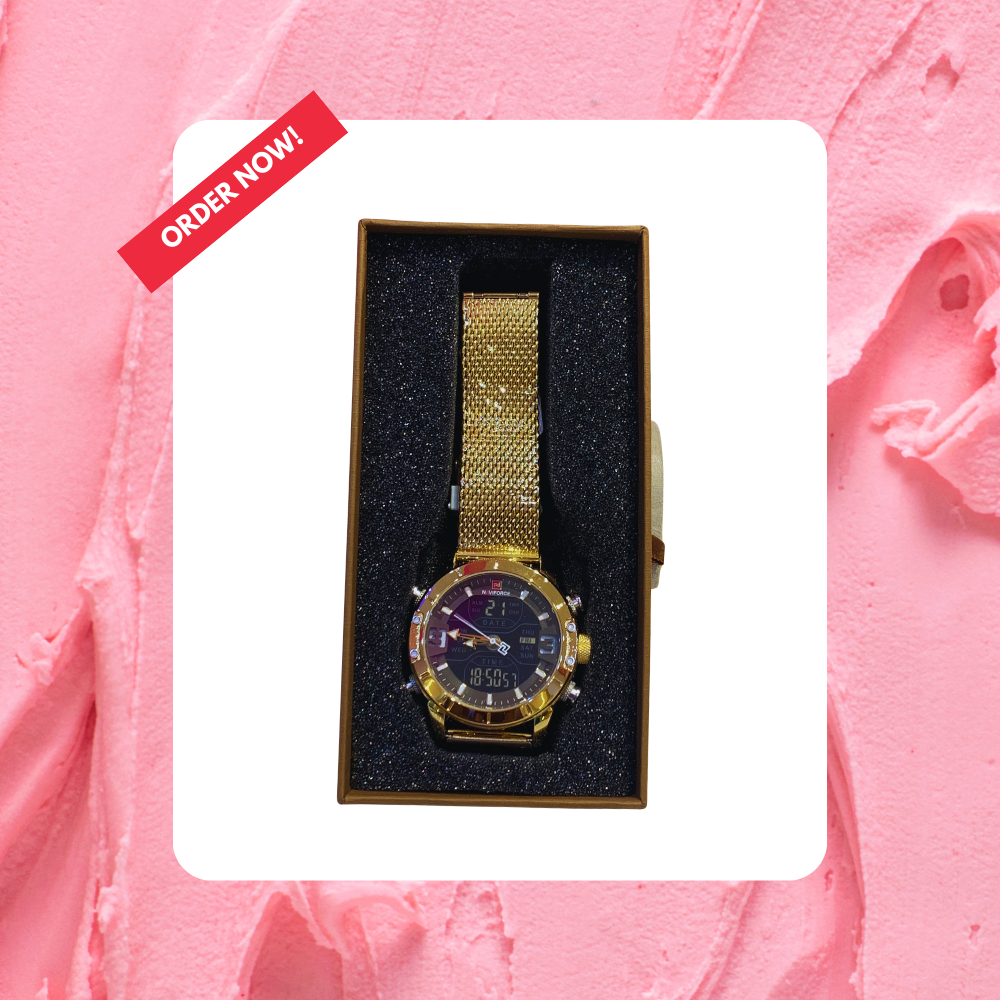 Be the first to review “Naviforce Gold-tone men’s wristwatch with a mesh strap”