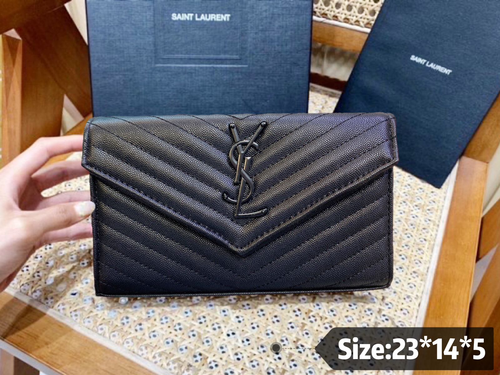 Be the first to review “Saint Laurent Cassandre Envelope Chain Wallet in black matelassé textured-leather with black hardware” Cancel reply